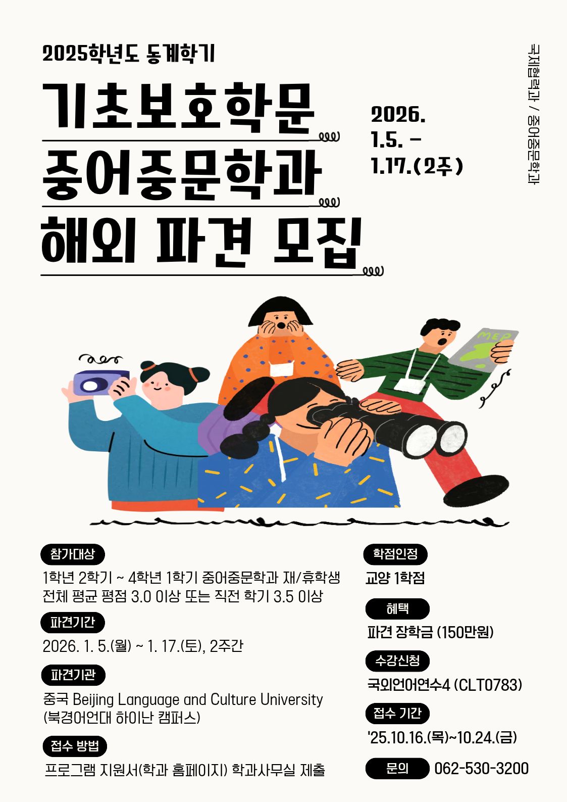 2025년도 동계 기초보호학문(중어중문학과) 해외 파견 모집 안내